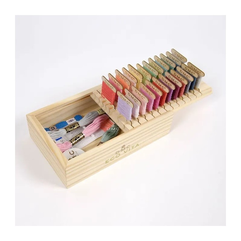 Houten organizer met daarbij 24 houten wikkelkaartjes.